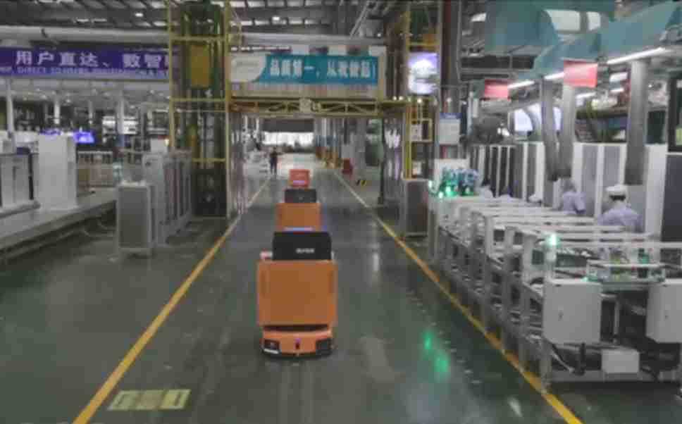 为车载冰箱物流配送打造的智能解决方案,,,,包含产中物流通过潜伏举升AMR搬运至线边,,,产后成品物流智能仓储,,,,流程包含产中物流智能齐套入库,,线边安灯叫料AMR智能配送至线边,,,,成品入库、、、、出库,,,,通过无人堆高车机器人,,智能仓储管理替代人工作业管理,,,实现更高存储、、、、更高效率、、、、更具柔性化的解决方案。。。
